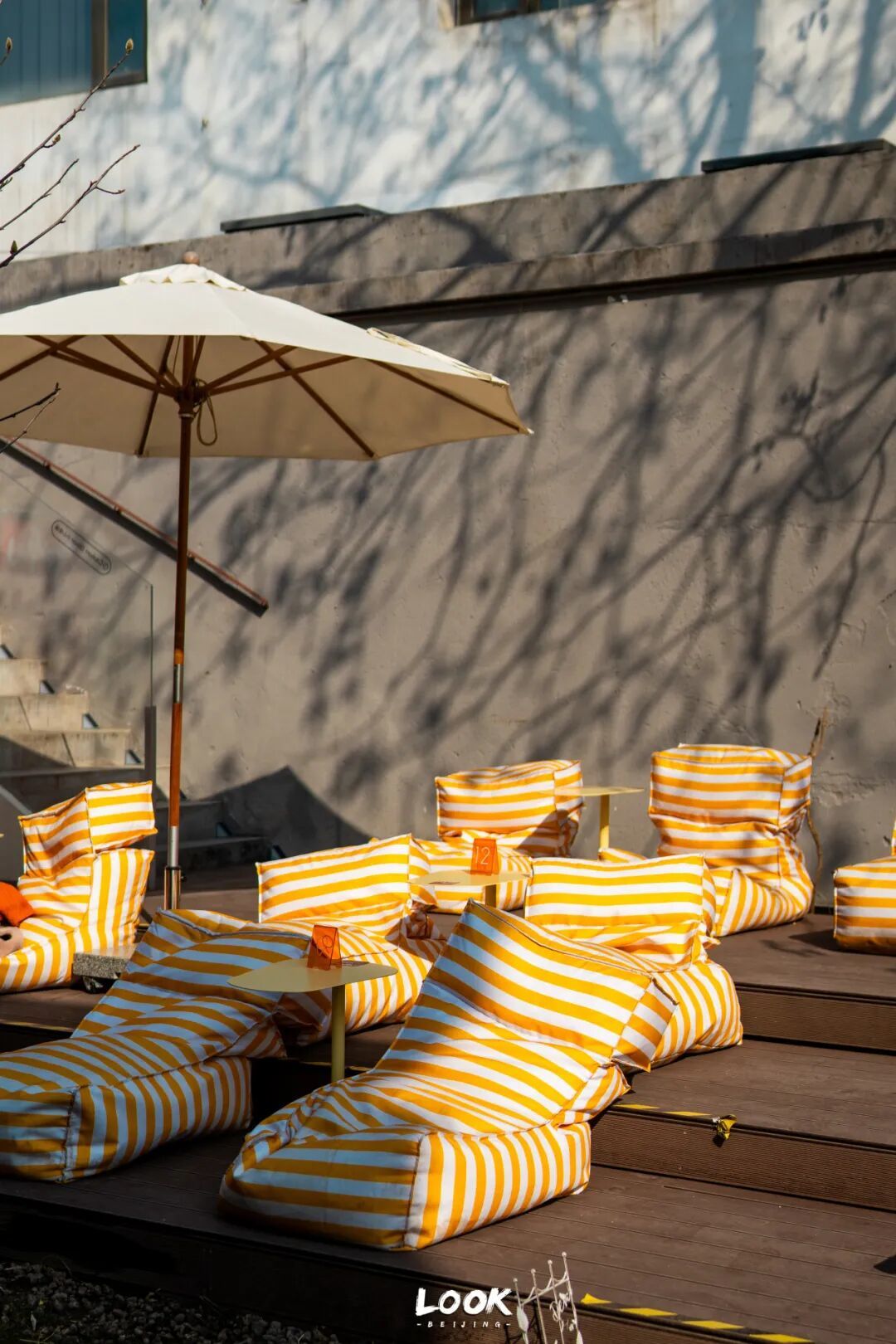 还有遮阳伞、沙滩椅组成的闲暇户外空间